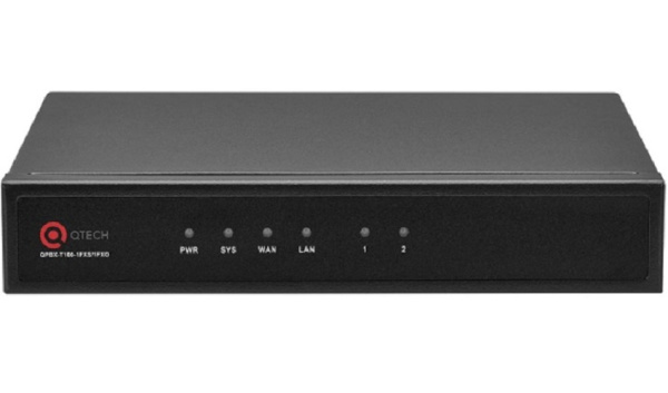 АТС IP QTECH QPBX-T100-2FXO до 100 SIP абонентов, 30 одновременных разговоров, 2FXO, питание 220В через адаптер QTECH QPBX-T100-2FXO