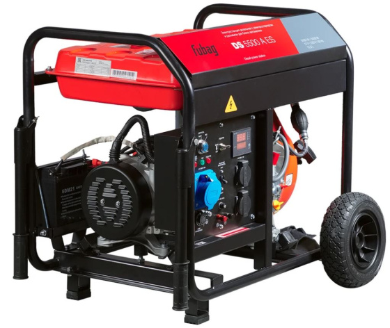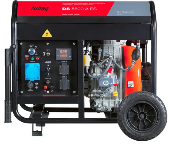 FUBAG DS 5500 A ES (641694) — это однофазная дизельная электростанция номинальной мощностью 5 кВт и максимальной мощностью 5,5 кВт. Она предназначена для организации мобильного электроснабжения передвижных бригад, торговых точек, мастерских или использования в загородном доме.