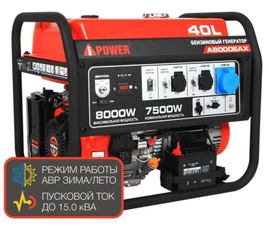 Бензиновый генератор A-iPower A8000EAX станет Вашим надежным источником питания при отсутствии электроэнергии. Этот генератор с максимальной мощностью 8 кВт и номинальной мощностью 7,5 кВт работает до 10 часов при 100% нагрузке!
