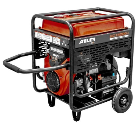 Бензиновый однофазный генератор ATLET SC15000-I — профессиональное устройство для обеспечения электроэнергией в различных условиях. Он работает на бензине, поддерживает напряжение 220 В и подходит для подключения большинства бытовых приборов и инструментов.