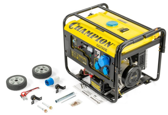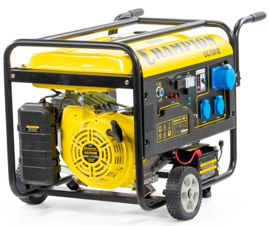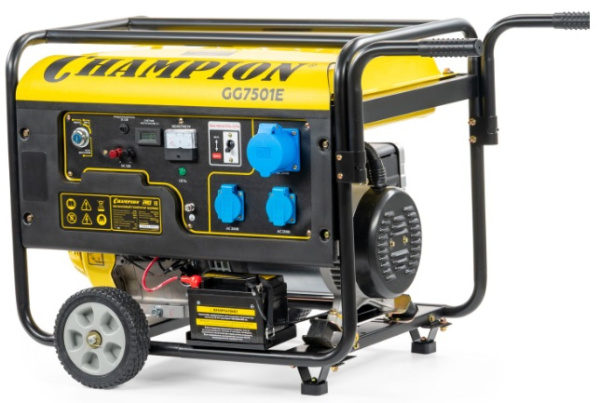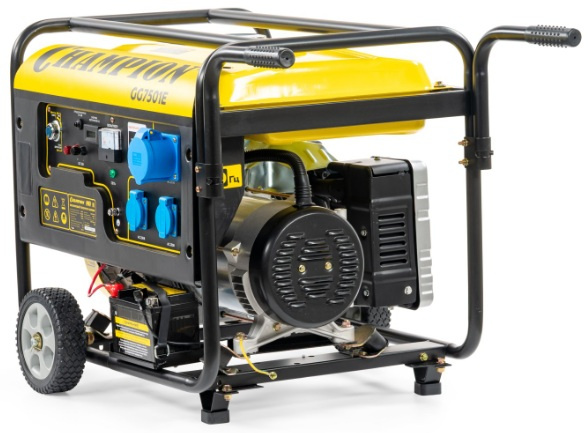 Бензиновый генератор Champion GG7501E, оснащенный электростартером, подойдет для питания бытовых приборов и инструментов.