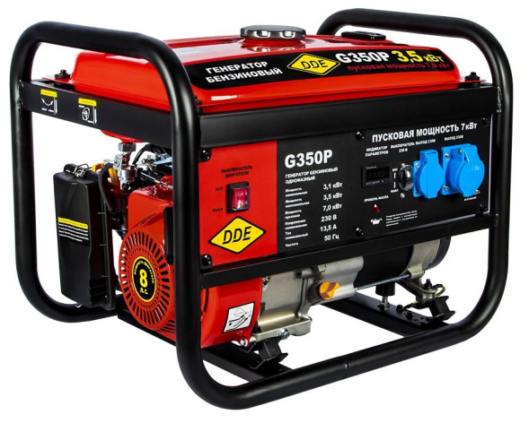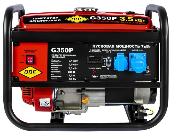 Бензиновый генератор DDE G350P— однофазная модель, предназначенная для использования в качестве источника резервного питания. Подходит для дачи, частного дома, пикника или небольшой стройки.