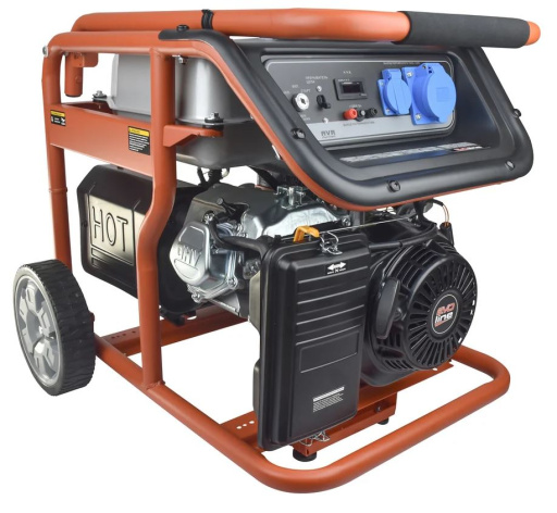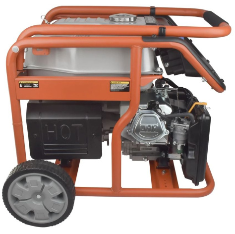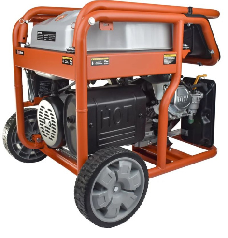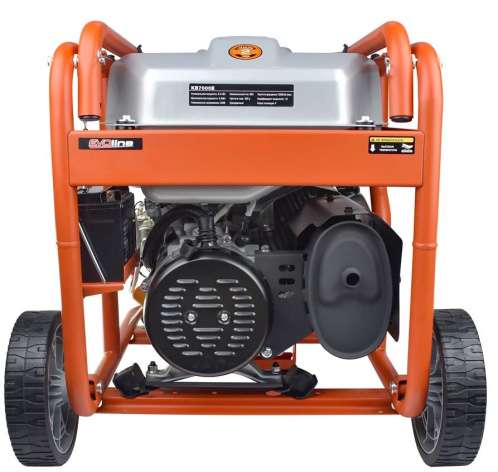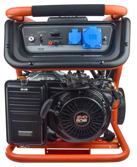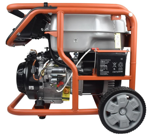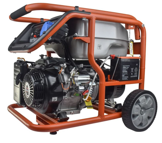 Рама выполнена из высококачественной стали, которая служит не только для защиты двигателя, но и для удобной транспортировки электростанции. Объем топливного бака составляет 32 литра.