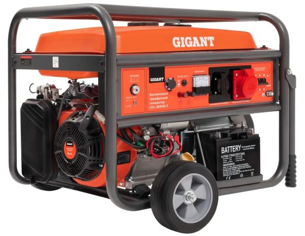 Бензиновый генератор Gigant GGL-8000E-3 — это мощная, трехфазная (380 В) электростанция профессионального класса с электростартером, предназначенная для обеспечения электроэнергией крупных объектов, строительных площадок или загородных домов, где требуется питание как стандартных однофазных (220 В), так и мощных трехфазных потребителей.
