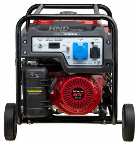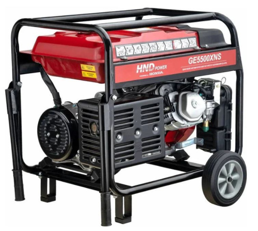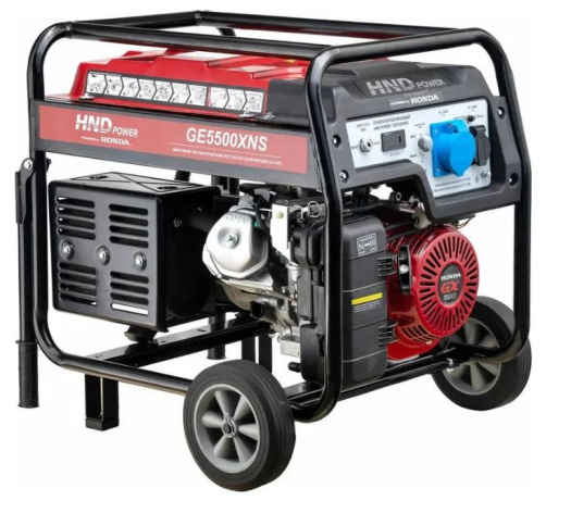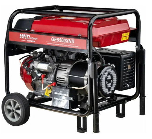 Бензиновый генератор HND GE 5500 XNS с двигателем Honda — однофазный автономный источник переменного тока максимальной мощностью 5,5 кВт. Оснащён электростартером и предназначен для использования в местах, где отсутствует подключение к магистральной электросети.