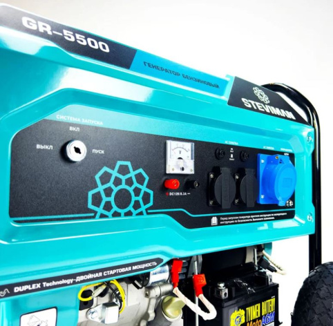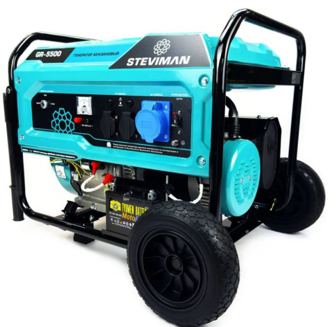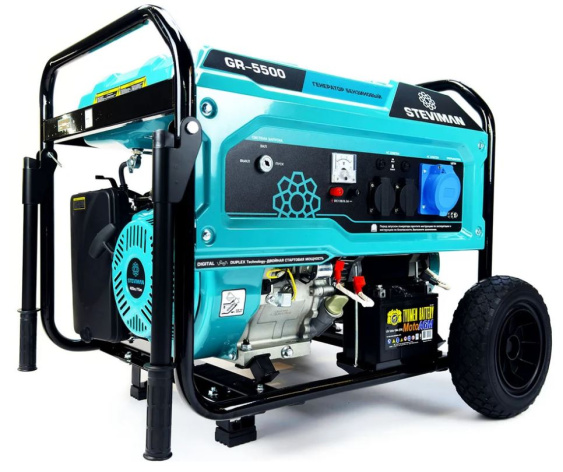 Мощный четырехтактный бензиновый двигатель STEVIMAN GR-5500 объемом 420 см? и мощностью 15 л.с. надежно справляется с любыми задачами. Благодаря ручному и электрическому стартерам генератор легко запускается в любое время года. Расход топлива всего 2,3 л/ч позволяет агрегату работать долго без дозаправки, обеспечивая стабильное электроснабжение.