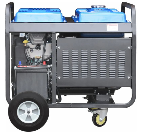 Предназначен для выработки электроэнергии с напряжением 220–380 В, частотой 50 Гц и номинальной мощностью 10 кВт. Оснащён колёсным комплектом для удобства перемещения.