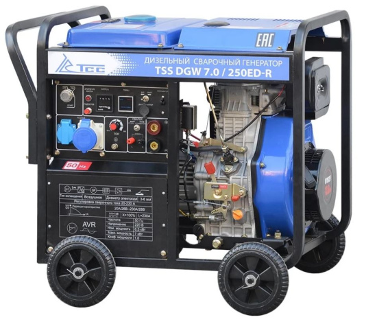 Дизельный сварочный генератор ТСС DGW 7.0/250ED-R 018692 — профессиональное оборудование, предназначенное для ручной дуговой сварки (MMA) и одновременного питания электропотребителей в условиях отсутствия стационарной сети электроснабжения.