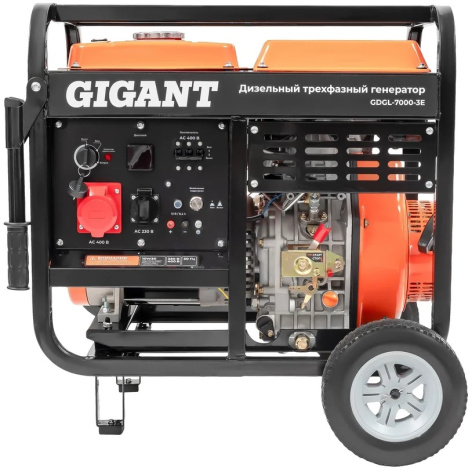 Дизельный трехфазный генератор Gigant GDGL-7000-3E представляет собой универсальное мобильное оборудование, которое служит для энергоснабжения различных устройств и приборов. Благодаря медной обмотке ротора и статора модель отличается надежностью и долговечностью. Металлическая силовая рама защищает рабочие узлы агрегата от повреждений при механических воздействиях. На панели управления располагаются стрелочный вольтметр для контроля напряжения и две розетки для быстрого подключения потребителей. Электростартер гарантирует легкий запуск аппарата в любое время года.