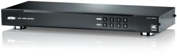 Матричный аудио-видео коммутатор VM0404HA предлагает простой и доступный способ маршрутизации цифровых сигналов от любого из четырех HDMI-видеоисточников к любому из четырех HDMI-дисплеев. Управление может осуществляться с помощью кнопок передней панели, ИК-пульта дистанционного управления или по интерфейсу RS-232.