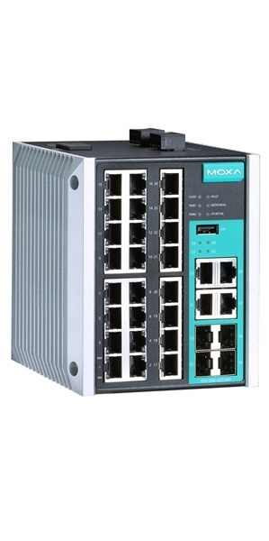 Управляемый коммутатор Gigabit Ethernet c портами 24 x 10/100BaseT(X), 4 x 10/100/1000BaseT(X) или 100/1000BaseSFP, с питанием 12/24/48 В пост., с диапазоном температур от -40 до 75?C