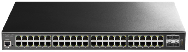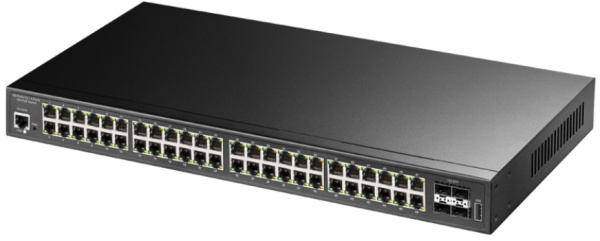 Мощный скоростной управляемый L2 гигабитный коммутатор с 44 каналами РоЕ/РоЕ+ до 720 Вт, 4 восходящими GbE и 4 оптоволоконными 10G SFP+ каналами.