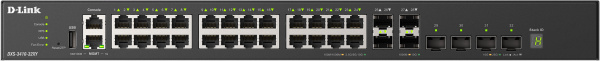 Управляемый L3 стекируемый коммутатор DXS-3410-32SY предназначен для безопасного подключения конечных пользователей к сети предприятия или сети Metro Ethernet. Коммутатор оснащен 28 портами 10GBase-X SFP+ и 4 портами 25GBase-X SFP28, поддерживает многоадресные группы и расширенные функции безопасности, что делает его идеальным мультигигабитным решением уровня доступа. Данный коммутатор также оснащен портом USB 2.0, что позволяет осуществить загрузку программного обеспечения и конфигурационных файлов непосредственно с USB-накопителя и сохранить на нем файлы системного журнала.