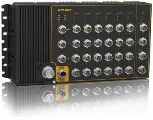 Промышленный 28-портовый управляемый коммутатор 3 уровня, 24 порта 10/100Base-TX M12.