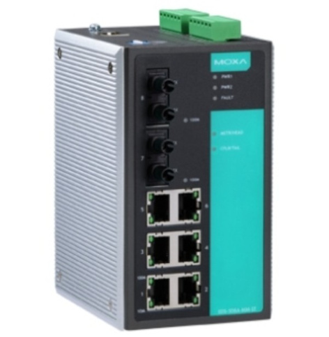 Управляемый коммутатор 6 x 10/100BaseTX, 2 x 100BaseFX (многомодовое оптоволокно), разъем ST, с расширенным диапазоном температур.