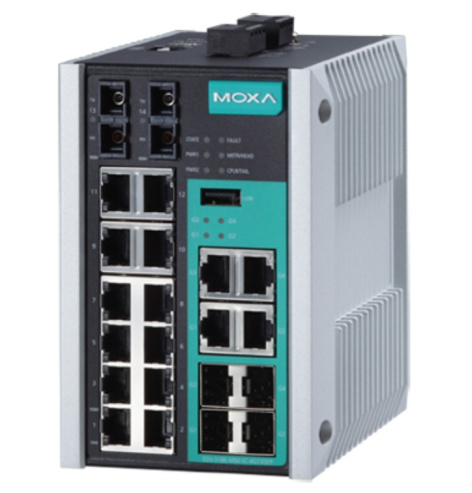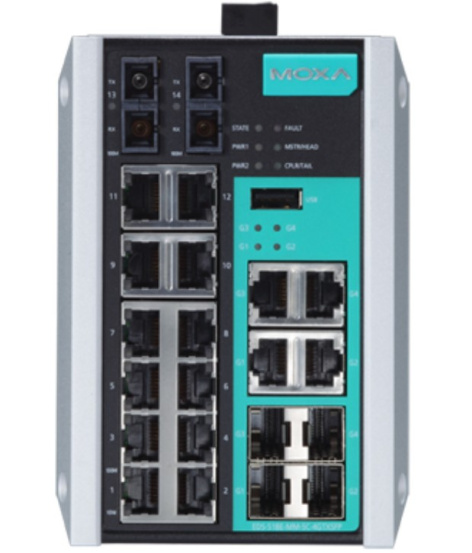 Управляемый коммутатор Gigabit Ethernet c портами 12 x 10/100BaseTX, 4 x 10/100/1000BaseT(X) или 100/1000BaseSFP, 2 x 100BaseFX (многомод, разъем SC), с расширенным диапазоном температур.
