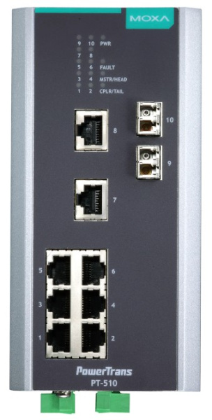 Управляемый коммутатор 8 x 10/100BaseTX, 2 x 100BaseFX (многомодовое оптоволокно), питание - 24 В пост., разъем LC.