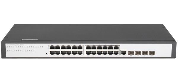 Модель имеет 24 основных порта со скоростью передачи данных 10/100/1000 Мбит/c, 4 Uplink порта 1000 Мбит/c SFP и 1 консольный порт RJ45. Низкий уровень шума позволяет монтаж не только в изолированных помещениях, но и в рабочих, таких как офисы, опен-спейсы и т.д. Специальный веб-интерфейс позволяет удаленно осуществлять управление настройками подключения.