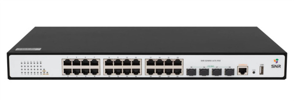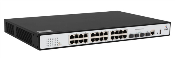 Управляемый PoE коммутатор уровня 2, 24 порта 10/100/1000Base-T с поддержкой PoE, 4 порта 1/10G SFP+