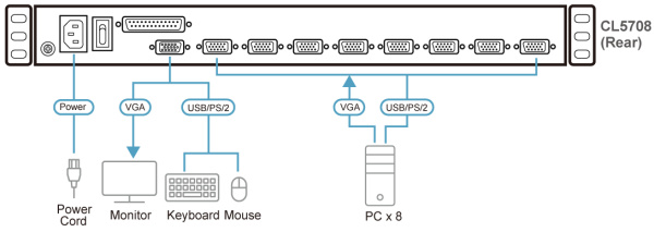 ATEN CL6708MW-ATA-RG - 8 портовый переключатель с KVM консолью.