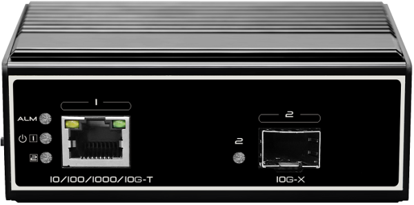 Медиаконвертер выполнен в компактном прочном металлическом корпусе с внешним источником питания и служит для преобразование интерфейсов «витая пара — оптический кабель» для сетей Ethernet. Особенностью нового конвертера является поддержка режимов работы SFP+ порта на скоростях 1.25/2.5/10Гбит/с, а так же работа в расширенном диапазоне температур.