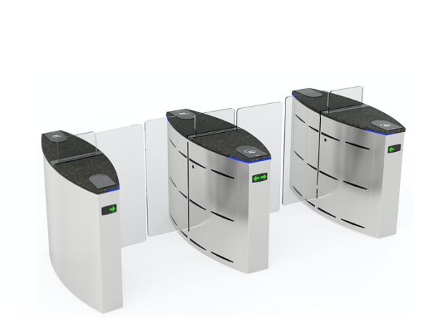 Комбинированный центральный модуль раздвижного турникета, оснащенный платой управления и светодиодными указателями прохода и направления.