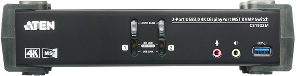 KVM Переключатель ATEN CS1922M с поддержкой USB 3.0 и 4K DisplayPort со встроенным концентратором MST и технологией Multi-Stream Transport. Устройство позволяет пользователям, обладающим двумя дисплеями организовать многозадачность, при этом уменьшив объемные кабельные соединения.