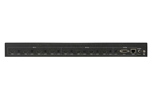 Коммутатор имеет 4 входных и 4 выходных порта HDMI.