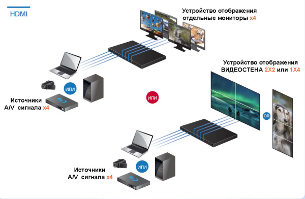 Бесшовное или seamless переключение источников сигнала. Функция позволяет быстро переключать источники сигнала простой сменой кадров без задержек, черного фона и мерцаний. Функция работает независимо от типов сигналов, разрешений, соотношения сторон и других параметров источников сигнала на входах и устройств отображения на выходах