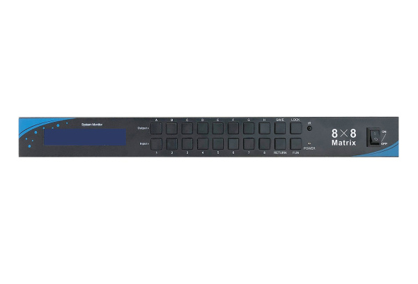 Коммутатор представляет собой законченное решение для организации матричной коммутации HDMI сигналов. Для удобной эксплуатации коммутатора не нужно иметь какого-либо дополнительного оборудования или навыков – пульт ДУ, поставляемый в комплекте, позволит привычным образом управлять работой коммутатора, а выносной ИК-приемник – разместить коммутатор в технической зоне помещения. Настройка и управление коммутатором также возможны при помощи кнопок и сервисного экрана, которые располагаются на его лицевой панели, или при помощи ПО "Matrix Control".