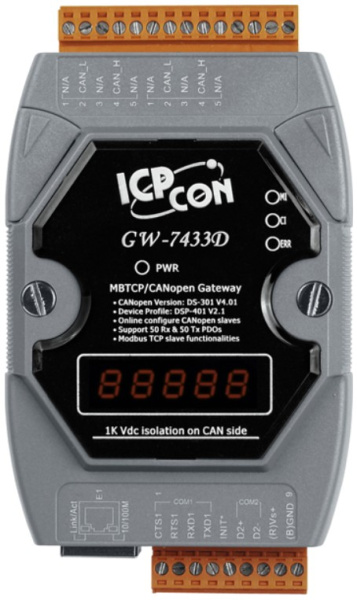 Преобразователь Modbus TCP Server/Modbus RTU Slave в CANopen Master.