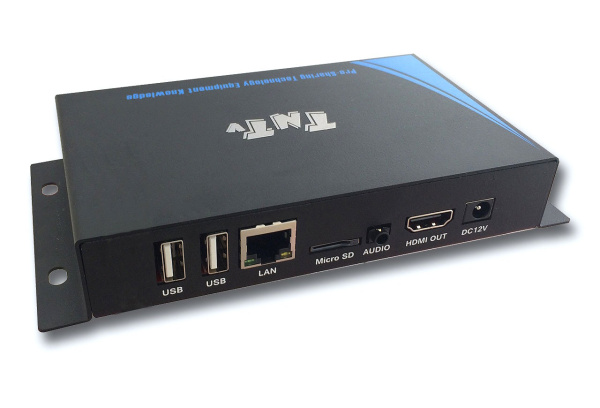 TNT MMS-188H-R контент-плеер (с дополнительной лицензией) – сетевое программно-аппаратное устройство, предназначенное для хранения исходных данных, создания и трансляции рекламного/информационного аудио/видеоконтента (видеороликов) в режиме реального времени по заданному расписанию.