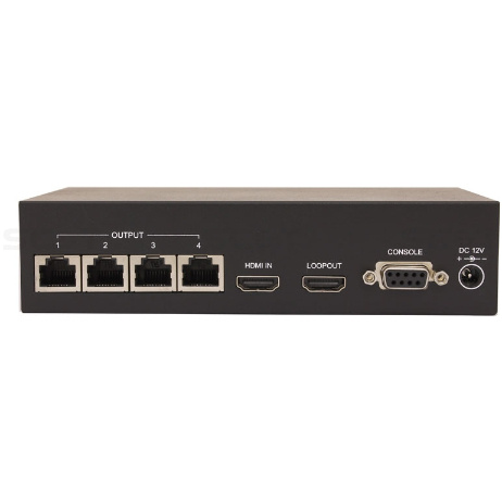 Комплект (удлинитель-распределитель+4 приёмника) HDMI 1.4 (1 вход/4 выхода) с передачей по кабелю витой пары CAT5e на удалённые приёмники.