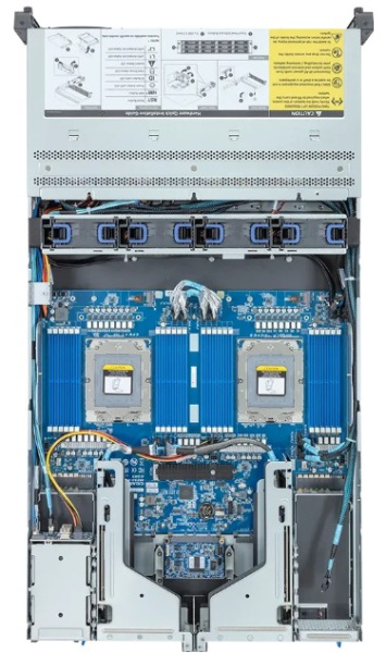Основой платформы служат два процессорных разъёма SP5, что позволяет создавать мощные двухпроцессорные конфигурации. Чипсет, интегрированный непосредственно в процессор, обеспечивает эффективное взаимодействие всех компонентов, снижая задержки и повышая общую производительность системы. Каждый процессор поддерживает внушительное тепловыделение до 400 ватт, что гарантирует стабильную работу даже под экстремальными нагрузками, характерными для сложных вычислений и виртуализации.