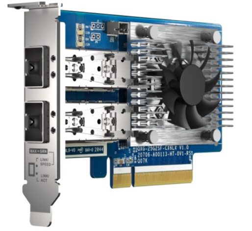 QXG-25G2SF-CX6 оснащен контроллером NVIDIA Mellanox ConnectX-6 Lx SmartNIC, поддерживает PCIe Gen4 (обратно совместим с Gen3/Gen2) и обеспечивает скорость передачи данных до 25 Гбит/с (поддерживает 10/25 Гбит/с). Используя объединение портов для объединения нескольких портов, можно достичь скорости до 50GbE для ускорения совместного использования файлов и интенсивной передачи данных.