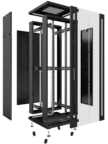 Имея современный дизайн, шкафы предназначены для установки и использования внутри помещений. В основе шкафа лежит конструкция из двух сварных рам, что позволяет без труда выдерживать нагрузку до 800 кг. В основание шкафа и в крыше предусмотрены щеточные вводы для защиты оборудования от пыли при вводе информационного и силового кабеля.