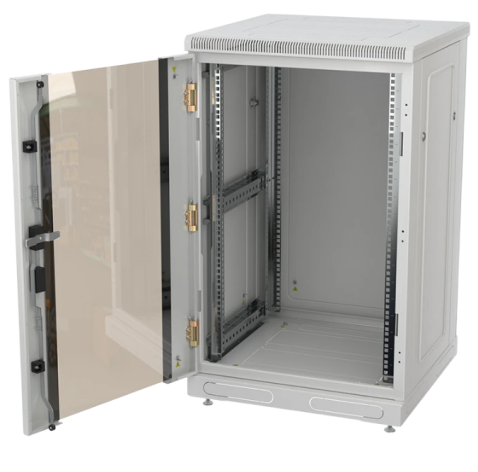 Телекоммуникационный шкаф ССД 130411?00495 — элегантное и функциональное решение для размещения сетевого оборудования. Стеклянная передняя дверь придаёт изделию современный внешний вид и позволяет визуально контролировать состояние техники без необходимости открывать шкаф.