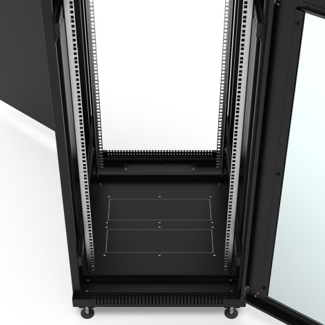 Напольный шкаф серии "NETWORK" предназначен для размещения активного и пассивного телекоммуникационного IT оборудования, стандарт 19 дюймов (19"). Статическая нагрузка - до 800 кг. Предназначен для использования внутри помещений. Передняя дверь стеклянная в металлической раме, задняя - цельнометаллическая. Обе двери оснащены поворотными ручками с замком. Двери можно навесить как с левой, так и с правой стороны, тем самым обеспечивая удобство эксплуатации в тесных помещениях. Угол открытия двери более 180 градусов. Шкаф укомплектован съемными боковыми панелями. Каждая панель оснащена замком и пластиковыми защелками. Для ввода кабелей, в крыше и дне шкафы предусмотрены щеточные кабельные вводы (идут в комплекте, 2 шт). В крышу шкафа и дно возможно установить вентиляторный модуль на 2 или 4 вентилятора. В комплекте поставки имеются регулируемые ножки. Возможна установка транспортировочных роликов (заказываются отдельно). Шкаф поставляется в разобранном виде.