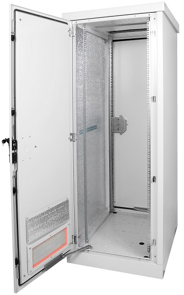 Шкаф изготовлен из листовой стали толщиной до 2мм., внутри покрыт термоизоляционным материалом. В комплект поставки входит утеплитель, который необходимо наклеить на основание внутри каркаса после прокладки проводов. В крыше каркаса и на передней двери предусмотрены вентиляционные окна, которые могут быть закрыты заглушками либо в них могут быть установлены фильтры и вентиляторы серии R-FAN. Двери выполнены из стали 2мм, могут быть перевешены для изменения стороны открытия.