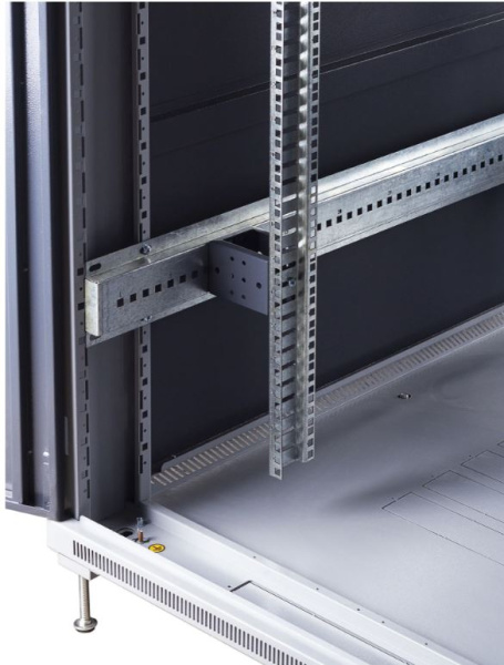 Шкаф имеет современный дизайн и обеспечивает удобное обслуживание оборудования. Возможна установка в помещениях как офисного, так и промышленного типа. Допустимая распределенная нагрузка - 800 кг. Степень защиты – IP 20.