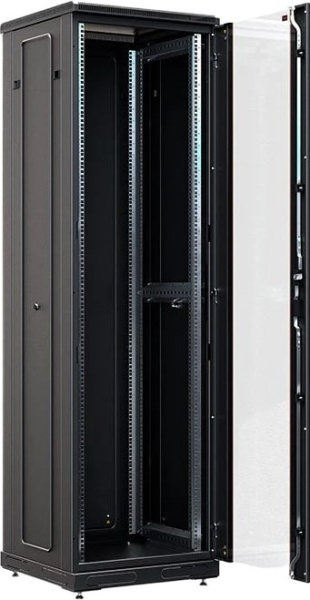 «Элегантный контроль за сердцем сети» — телекоммуникационный шкаф высотой 42U в строгом черном исполнении сочетает современный дизайн и функциональность. Стеклянная дверь позволяет визуально контролировать оборудование, не открывая шкаф, что делает его идеальным решением для современных серверных и коммутационных узлов, где важны эстетика и быстрый доступ к информации о состоянии системы.