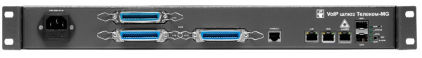 Абонентский VoIP шлюз Телеком-MG-48FXS предназначен для передачи голосовых и факсимильных каналов через сети передачи данных, располагает 48 FXS портами, 2 портами Ethernet 10/100/1000Base-T (RJ45), 2 портами 1000Base-X (SFP) и одним портом для подключения по протоколу RS-232 (RJ45). Электропитание 38-72V DC.