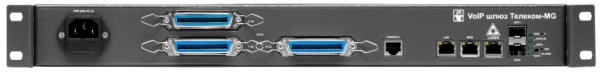 Абонентский VoIP шлюз Телеком-MG-52FXS предназначен для передачи голосовых и факсимильных каналов через сети передачи данных, располагает 52 FXS портами, 2 портами Ethernet 10/100/1000Base-T (RJ45), 2 портами 1000Base-X (SFP) и одним портом для подключения по протоколу RS-232 (RJ45). Электропитание 38-72V DC.
