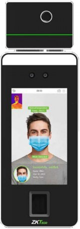 Терминал оснащен тепловизорной камерой, отображающей изображение на экране и специализированным процессором ZKTeco для распознавания лиц и новейшей технологии компьютерного зрения, поддерживает распознавание лиц и ладони.