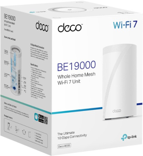 Сверхскоростная mesh-система с трибандовым покрытием (6 ГГц + 5 ГГц + 2,4 ГГц) до 19 Гбит/с. Идеальна для больших домов, 8K-стриминга и 500+ устройств одновременно. Беспроводное соединение узлов до 10 Гбит/с, AI-оптимизация и HomeShield защита.