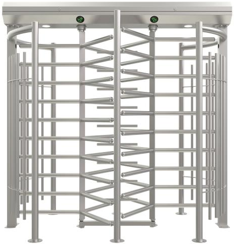 Двухпроходный автоматический моторизованный полноростовый турникет с корпусом из оцинкованной окрашенной стали. Ротор и планки из нержавеющей стали AISI 304. Три сектора по 120 градусов. Встроенный блок управления. Индикатор направления движения. Освещение зоны прохода. Встроенный блок питания.