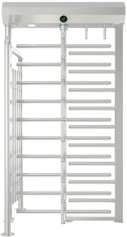 Автоматический моторизованный полноростовый турникет с корпусом из оцинкованной окрашенной стали. Ротор и планки из нержавеющей стали AISI 304. Четыре сектора по 90 град. Встроенный блок управления. Индикатор направления движения. Освещение зоны прохода. Встроенный блок питания.