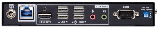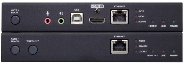 CE840-AT-G — USB True 4K HDMI HDBaseT 3.0 KVM-удлинитель, использующий новейшую технологию HDBaseT 3.0, состоит из локального и удаленного блоков, обеспечивая передачу несжатых сигналов True 4K HDMI, звука, RS232, Ethernet и USB на расстояние 100 метров по одному кабелю категории 6A или выше (рекомендуется кабель ATEN 2L-2920 категории 6A). Он позволяет выполнить простую, аккуратную и экономичную установку оборудования, не ставящую под угрозу распространение высококачественных аудио/видеоматериалов. KVM-удлинитель CE840 предоставляет возможность работы с двумя консолями, обладая двумя USB-портами для подключения USB-клавиатуры и мыши. Наличие кнопок выбора режима управления, позволяет переключать управляющую USB-консоль между удаленным и локальным блоком, а светодиоды передней панели указывают, какой из режимов управления в данный момент включен. Кроме того, для локального управления каждый из блоков оснащен выходным HDMI-портом и двумя дополнительными портами USB 2.0 для подключения периферийных USB-устройств. Таким образом, операторы могут управлять устройствами удаленно, а также получать информацию с обоих концов, находясь при этом в одном месте.