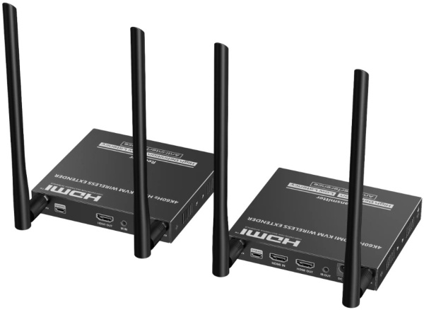 Lenkeng LKV699KVM-V2.0 — это беспроводной комплект для передачи видео (до 4K) и сигналов клавиатуры/мыши на расстояние до 50 метров. Основное его назначение — замена длинных кабелей HDMI и USB в случаях, когда прокладка проводов нежелательна или невозможна, например, при организации временных рабочих мест, презентаций или мобильных инсталляций. Комплект работает по принципу KVM (Keyboard, Video, Mouse), что означает возможность управления одним компьютером с удалённого места с помощью беспроводных периферийных устройств. Ключевой особенностью является поддержка разрешения до 4096x2160 при 60 Гц, а также наличие дополнительных функций, таких как передача ИК-сигналов для управления источником контента и локальный HDMI-выход на передатчике для мониторинга.