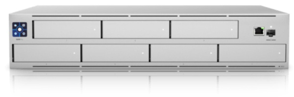 UniFi Protect Network Video Recorder Pro видеорегистратор корпоративного класса, с семью жесткими дисками RAID1/RAID5, обеспечивает глубину архива до 50 дней с 15 видеокамер с разрешением 4K, или с 50 видеокамер в разрешении Full HD.